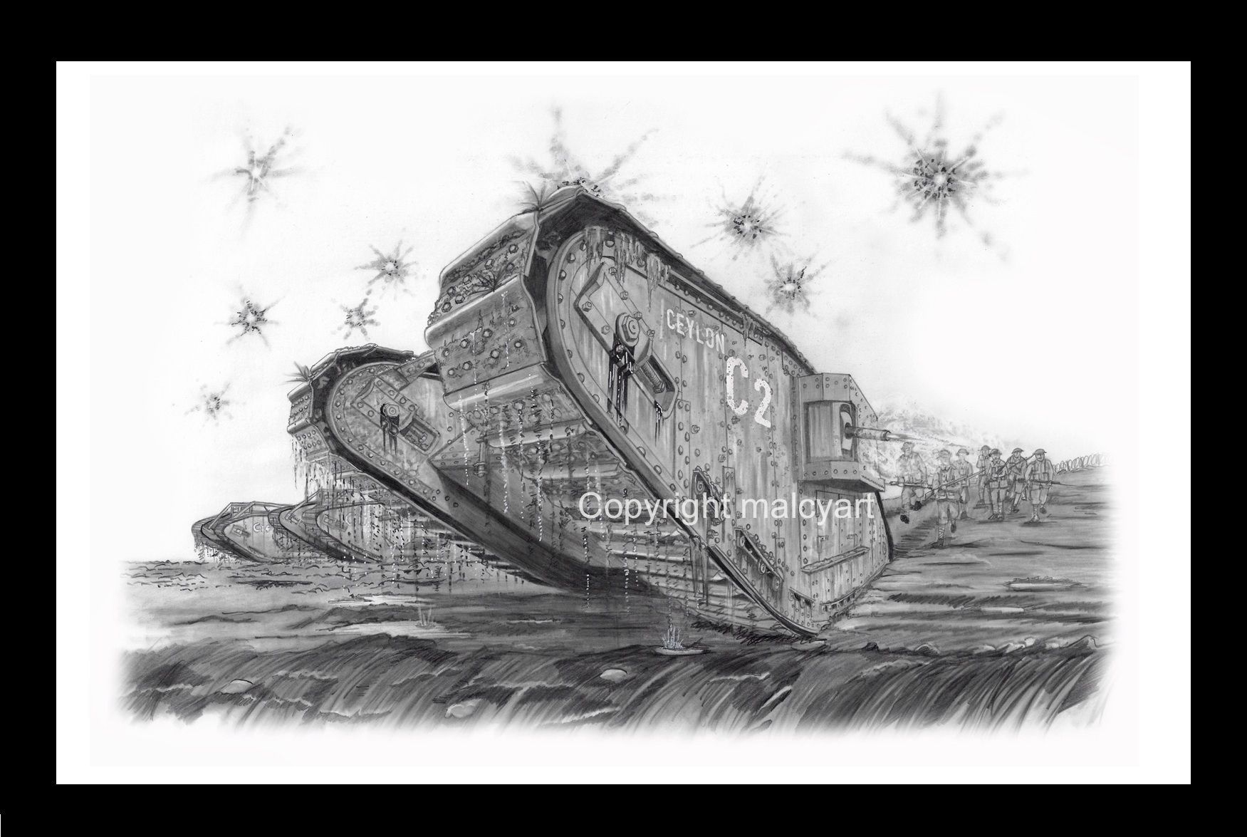 Once a Tank Crewman, Commander and Signals Instructor I’m now retired and a self representing Artist and Illustrator working in mainly pencil sketching but also other media. I undertake reasonably priced personal commissions for individuals and Groups or Organisations and produce high quality prints from the extensive library I have created, just contact me with your enquiry. The Store tab at the top of the page takes you to the shop for Prints, my book, the new colouring book, mugs and Steins and a further tab to show some of the commissions I've completed. I ship happily across the world on request so please, if you wish to get in touch, use the message facility on the contact us tab above.